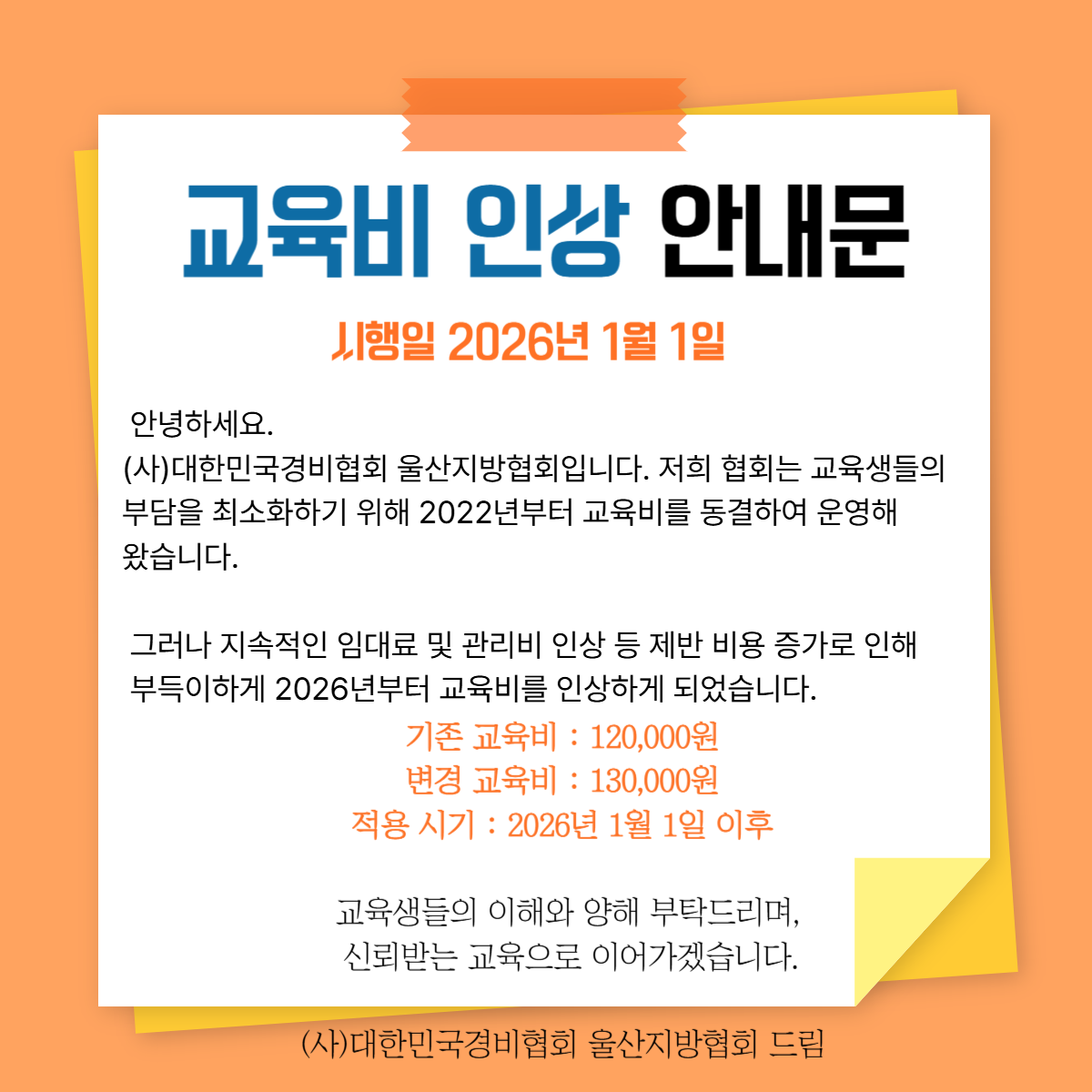 2026년 교육비 인상 공지 🙏